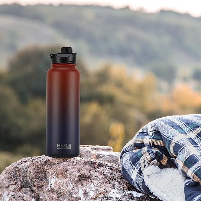 HASLE OUTFITTERS 40oz Stainless Steel Water Bottle, Vacuum Insulated Double Walled Leak Proof Sports Water Bottle with 2 Lids (Straw and Spout Lid) Thermo Mug Keep Cold and Hot(Ruby Purple Gradient,1)