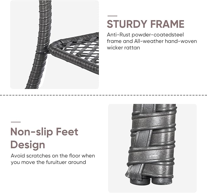 - Sturdy & Durable:The outdoor small end table is made of anti-rust powder-coated steel frame and hand-woven PE rattan, water-resistant and UV resistant synthetic resin wicker. Easy to clean, more suitable for outdoor environment and weather use