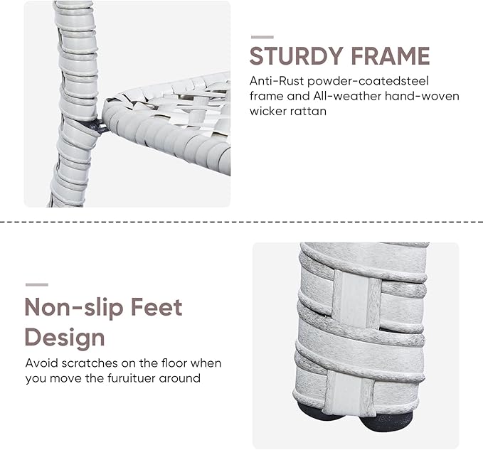 - Sturdy & Durable:The outdoor small end table is made of anti-rust powder-coated steel frame and hand-woven PE rattan, water-resistant and UV resistant synthetic resin wicker. Easy to clean, more suitable for outdoor environment and weather use