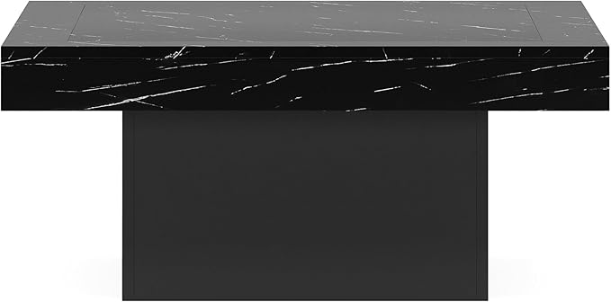 Tribesigns LED Coffee Table Square Engineered Wood Low Coffee Table for Living Room (Faux Marble Black+Black)