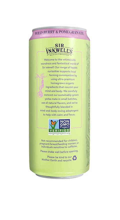 - HEALTHFUL ENERGY & VITALITY: Designed to energize your body and spirit, our delightfully delicious yerba mate contains a boost of 150 mg of organic caffeine from green tea. When combined with our adaptogen blend, Sir Inkwell’s yerba mate gives you a sustained energy “arc,” rather than the “flash and crash” of traditional energy drinks.