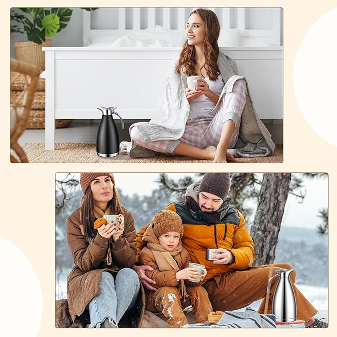 - Widely Use: the stainless steel carafe can be applied to home, office, shop, working places, car and more, allowing people to drink conveniently, and you also can take them with you for some outdoor activities, such as travel, camping, running and more