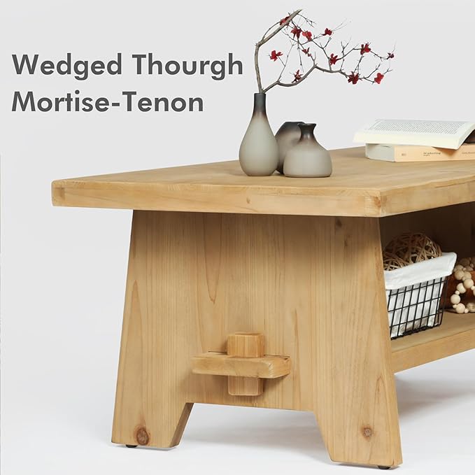 - WEDGED THROUGH MORTISE TENON - HOKYHOKY wood coffee table displays Real Wedged Through Mortise-Tenon and concealed hardware, producing a polished and quaint farmhouse impression.