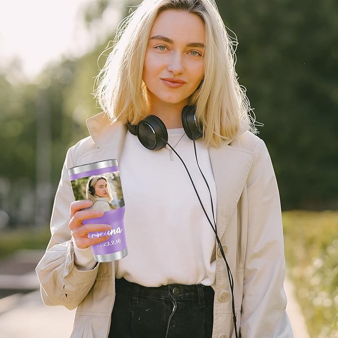Personalized Tumbler with Pictures Text Name, Custom Double Wall Insulated Tumbler, Personalized Gifts for Women Men Friend, Birthday Christmas Gifts, 30oz Coffee Tumbler w/Lid (30oz UV)