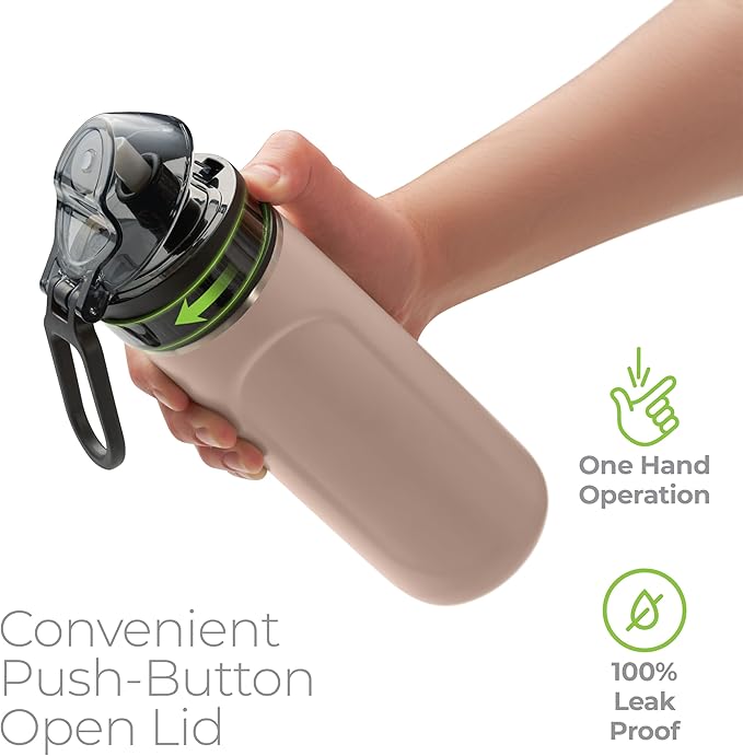 - LEAK PROOF LID - Our drinking bottle comes with a push to open straw lid, to serve all your needs. The straw lid keeps it totally leak proof to prevent, leaks, and drips, and keeps your beverage cold as can be.