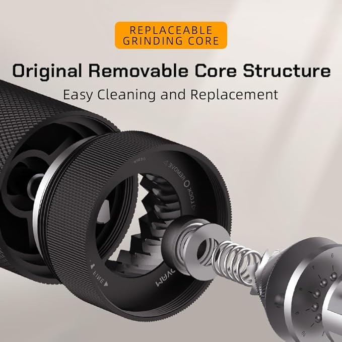 - Excellent Grindability - The manual burr coffee grinder milling blade is made of 55-58 HRC hardness, which is machined by 5-axis CNC for uniform grinding with virtually no overly coarse particles and the generation of fine powder is minimized. Adoption of μ-grade precision fine grinding of the large axis has resulted in a significant increase in the precision of the center axis.
