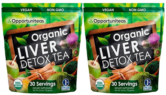 - Opportuniteas Organic Liver Detox Tea Powder - Matcha Green Tea, Milk Thistle, Coconut Water, Spirulina, Ginger, & Cinnamon - Boost Energy, Feel Better - Liver Care Support Supplement, Vegan, Non GMO
