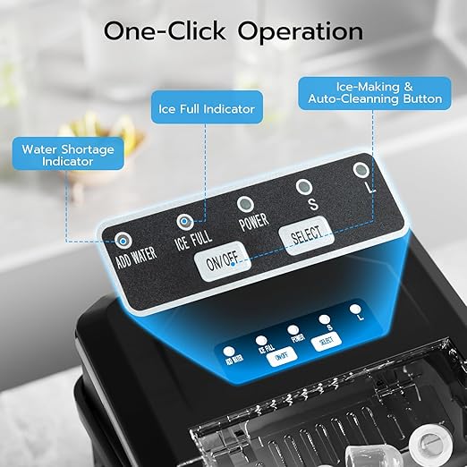 - 【Self-Cleaning & Quiet Operation】– Enjoy cleaner, fresher ice with the built-in self-cleaning function, while the low-noise motor keeps your space peaceful and your party vibe uninterrupted.