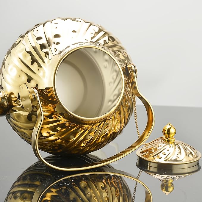 SANQIAHOME 2000ml stainless steel antique style teapot,with Infuser, thickened boiling kettle, lifting handle,Gold