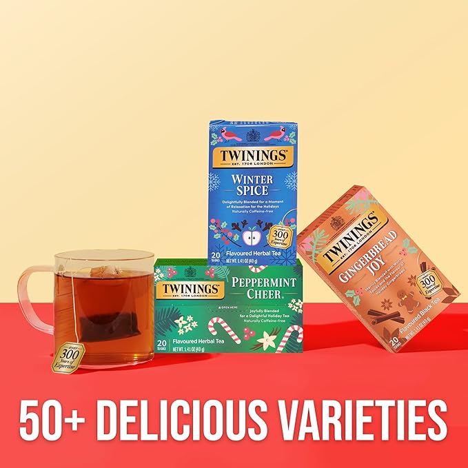 Twinings Peppermint Cheer Herbal Tea Individually Wrapped Bags, 20 Count (Pack of 1), Peppermint & Vanilla, Naturally Caffeine-Free, Enjoy Hot or Iced, 20 Teabags