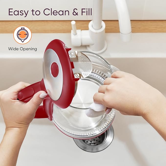 Cosori Electric Kettle, No Plastic Filter & Spout, Tea Kettle & Hot Water Boiler For Coffee & Tea, Water Heater & Teapot, Automatic Shut Off, Borosilicate glass, Red, 1.7L/1500W