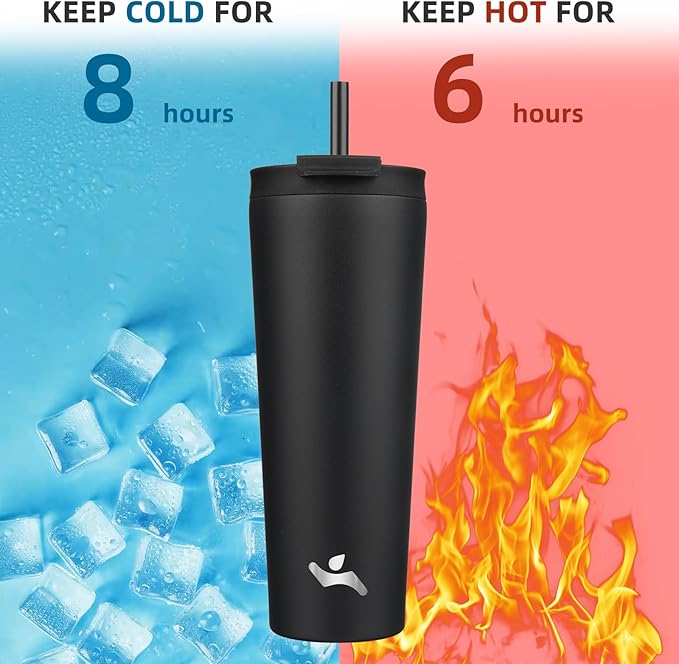 - The tumbler with straw lid is made of premium 18/8 stainless steel, double wall vacuum insulation keeps drinks cold for up to 8 hours and hot for up to 6 hours