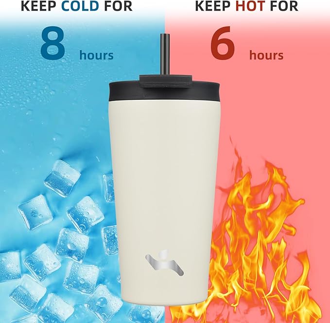 - The tumbler with straw lid is made of premium 18/8 stainless steel, double wall vacuum insulation keeps drinks cold for up to 8 hours and hot for up to 6 hours