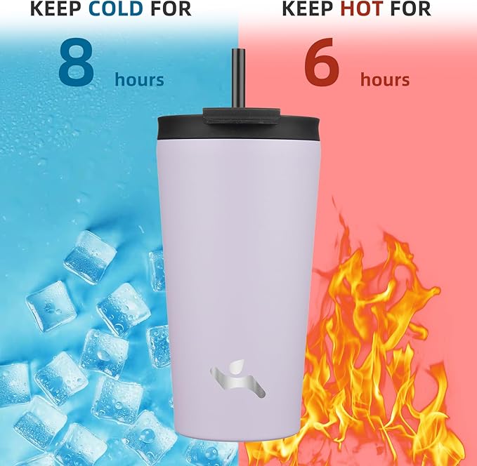 - The tumbler with straw lid is made of premium 18/8 stainless steel, double wall vacuum insulation keeps drinks cold for up to 8 hours and hot for up to 6 hours
