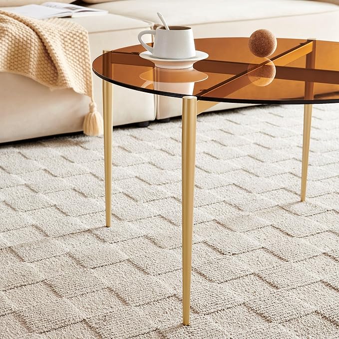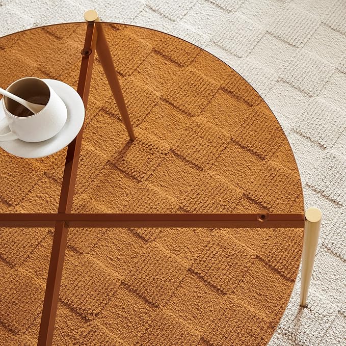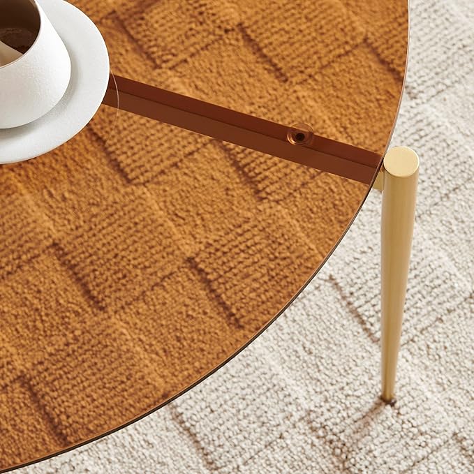 Shrine Round Tempered Glass Table, Gold Glass Coffee Table for Living Room, Circle Glass Top with Gold Metal Frame