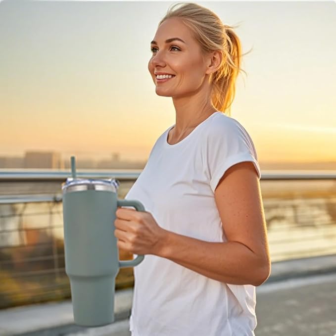 40 oz Tumbler with Handle and Straw Lid,Insulated Reusable Stainless Steel Water Bottle Travel Mug,Cupholder Friendly Double Wall Vacuum Sealed Cup (Shale)