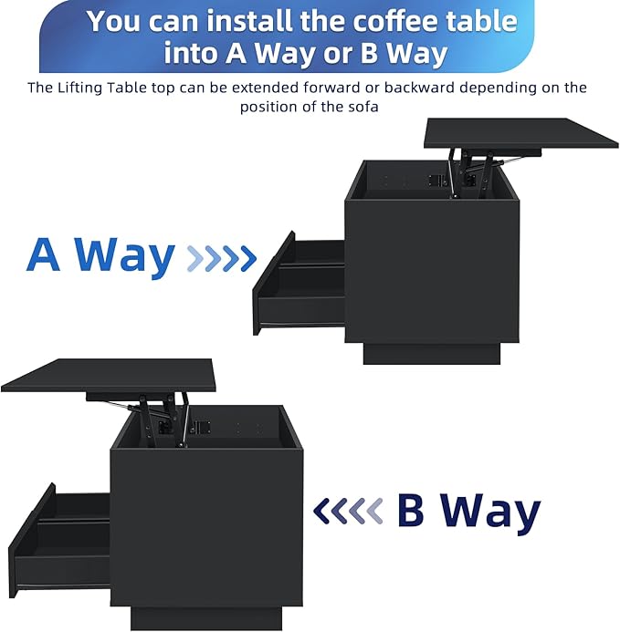 - Black Lift Top Coffee Table: The tabletop can be lifted and moved forward to create a decent workspace or dining space. The metal adjustment mechanism helps lift the tabletop from 19.29" to 25.2".