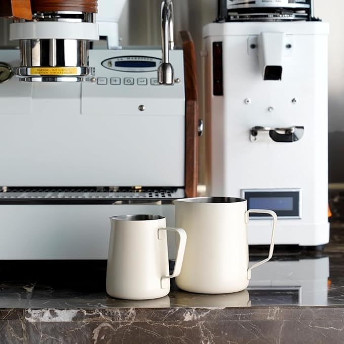 watchget Stainless Steel Milk Frothing Pitcher 12oz/350ml - Espresso Steaming Pitcher for Cappuccino, Latte Art, Coffee Machine Accessories Milk Jug Coffee Frother Cup, Creamy White