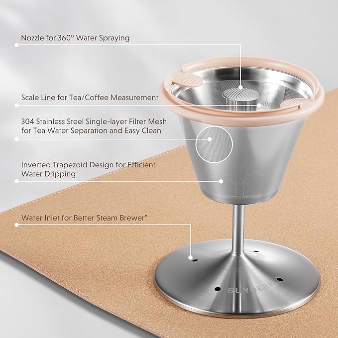 - Innovative Steam Brewing – Unlike traditional tea or coffee makers, our tea maker uses steam to evenly spray tea or coffee powder, extracting flavors before gently dripping it into the water. The professional steam extraction basket keeps tea/coffee separate from water, preserving nuanced trace elements and rich tastes.