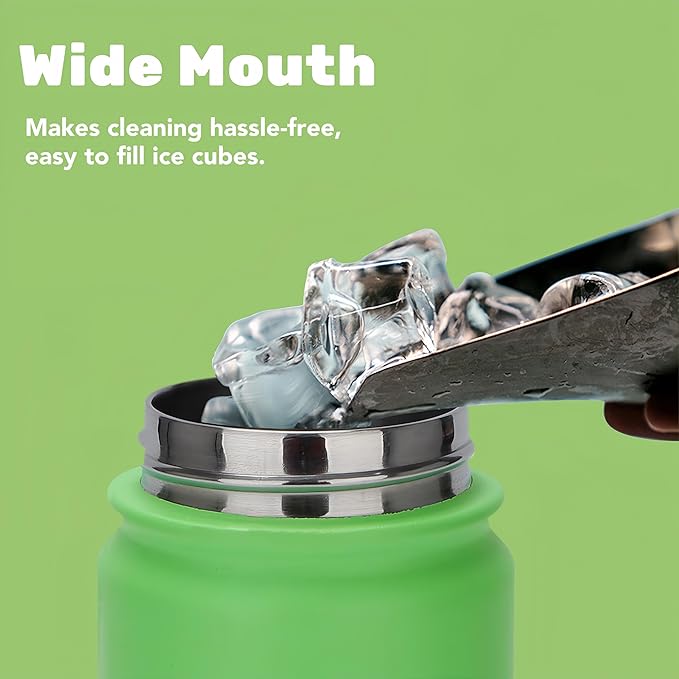 - DOUBLE-INSULATION & WIDE MOUTH DESIGN: Our insulated water bottle boasts double-wall vacuum insulation and 18/8 food-grade stainless steel. It keeps drinks cold for 24 hours or hot for 12 hours without altering taste, ensuring freshness. The wide mouth design allows easy filling with ice cubes and hassle-free cleaning. Plus, its 24oz size fits most standard cup holders.