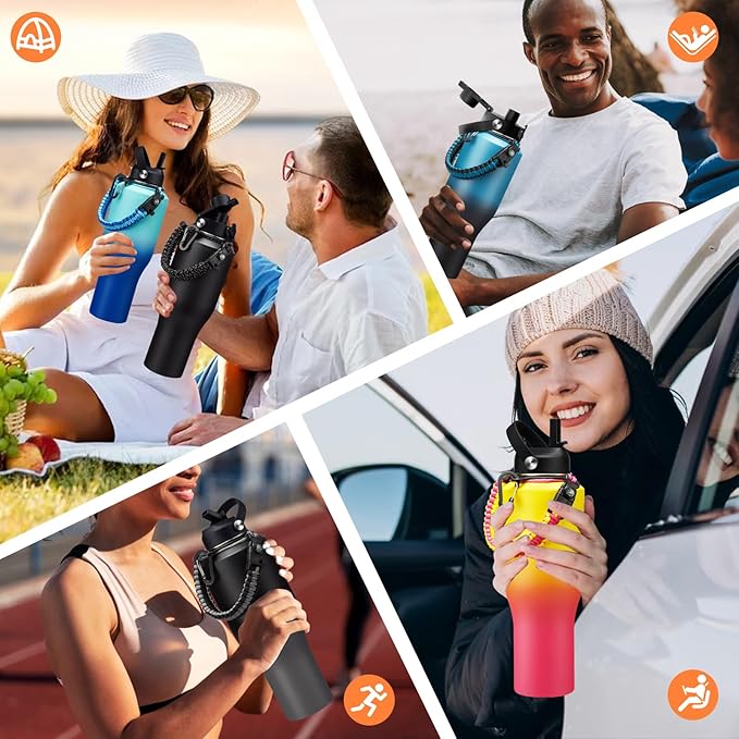 Insulated Water-Bottle 40 oz Tumbler - Fits in Any Cup Holder, Keep Cold 48H Hot 24H, Stainless Steel Water bottle with Straw, Spout Lid, Paracord Handle, Carrier Bag, Silicon Boot for Road Trip