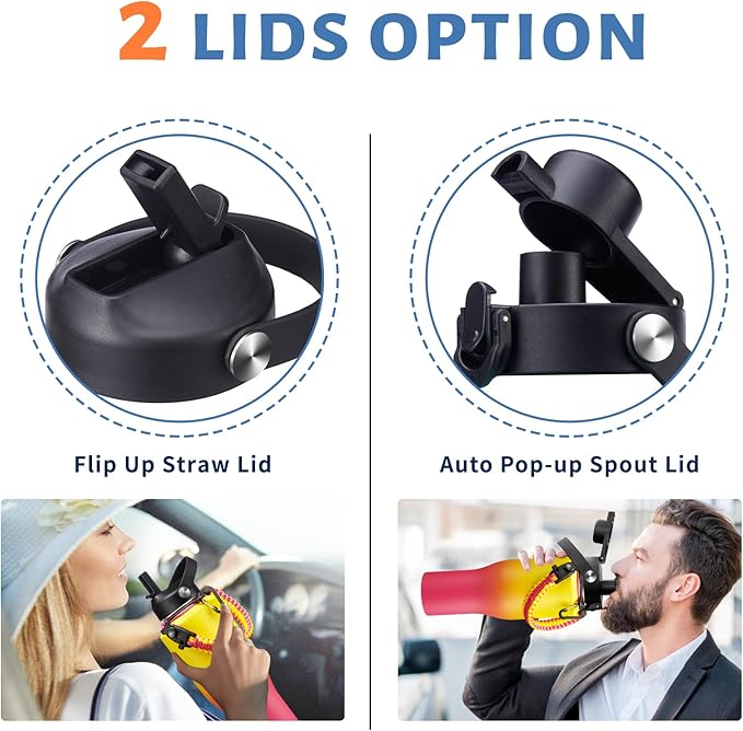 - LEAK-PROOF STRAW LID & AUTO SPOUT LID: This stainless steel tumbler thermal with straw and chug lid, both BPA-free, leak-proof and one-hand conctorl design, great car must have things!
