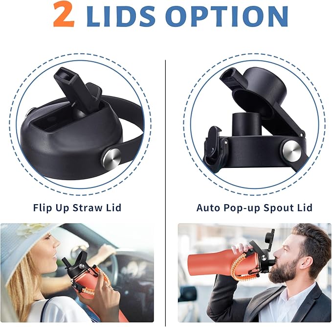 - LEAK-PROOF STRAW LID & AUTO SPOUT LID: This stainless steel water tumbler cup with straw and chug lid, both BPA-free, leak-proof and one-hand conctorl design, great car must have things!