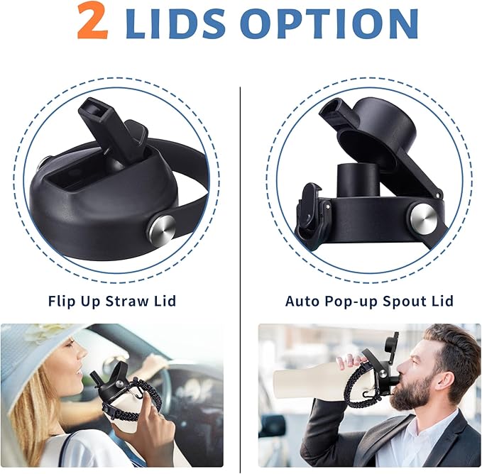 - LEAK-PROOF STRAW LID & AUTO SPOUT LID: This stainless steel tumbler thermal with straw and chug lid, both BPA-free, leak-proof and one-hand conctorl design, great car must have things!
