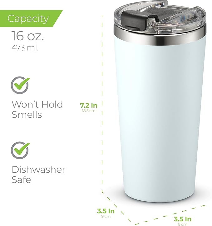 - DURABLE DESIGN - This coffee mug is made of strong 18/8 stainless material creating a leak-proof and shatter-proof design, making it the perfect choice for rough-and-tumble use. It's safe in backpacks, bike cup holders, or on the edge of your countertop. Plus, it's dishwasher safe for easy cleaning.