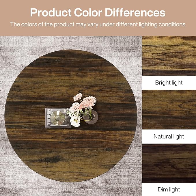 - Large Storage Space: Featuring a distinct and robust 2-tier design, this round coffee table boasts a large surface area(31.5" x 31.5"), with a fellow 18.11" x 18.11" base perfect for all your essentials. Its smooth top offers an ideal space for your beverages, and snacks, or a premium display space for those statement dรฉcor pieces