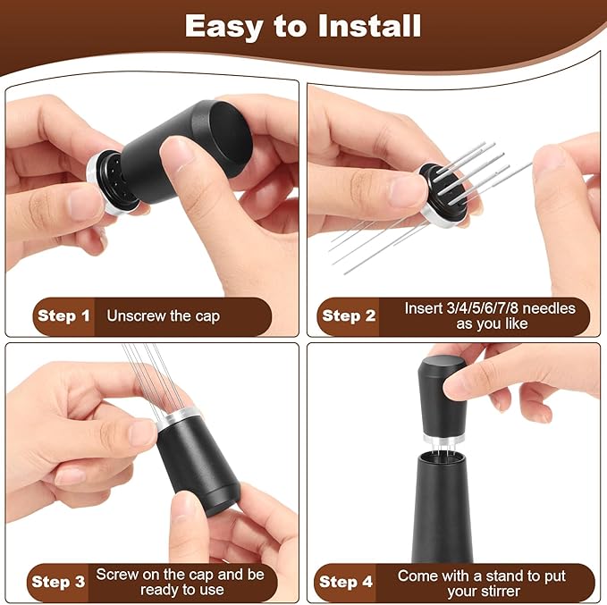 - Sturdy And Easy To Clean -- The sturdy espresso distribution tool handle is made from anodized aluminum alloy and the needles is made from rust-resistant premium 304 stainless steel, easy-clean.WDT coffee tool black with stand set weight about 220g/0.48lb, excellent quality and long service life.The needle of Jeymei Espresso Distribution tool can be disassembled and cleaned, and it is easy to disassemble and install.