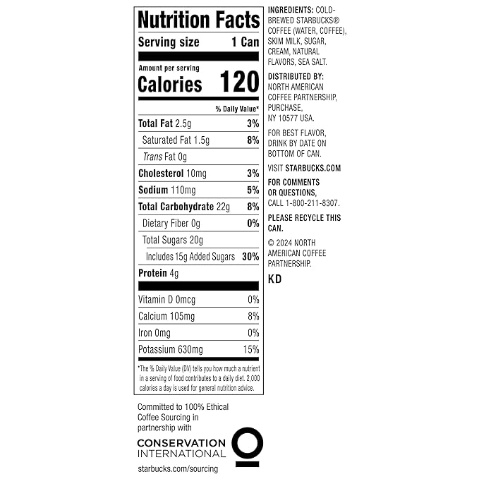 - Starbucks Cold Brew Iced Coffee Drink is committed to 100% Ethical Coffee Sourcing in partnership with Conservation International