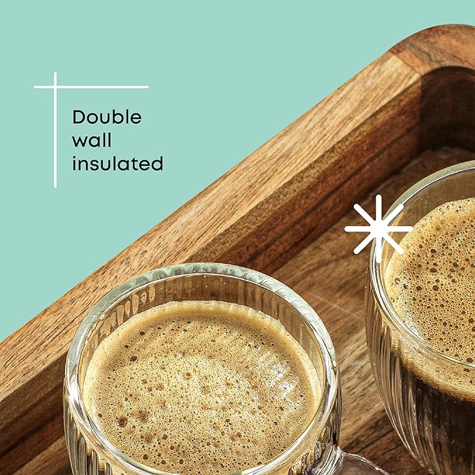 - SECURELY PACKED ESPRESSO ACCESSORIES: Just like all joyjolt coffee mugs, this set of two 5.4oz double walled espresso cups will come securely bubble wrapped and gift boxed with our 12 month warranty. Espresso glasses that don’t sweat in a rippled aesthetic cups vibe. Yay! Drink with Joy and JoyJolt.