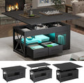 - 【What you get?】The lift top coffee table with 4 lifting methods also has a partitioned hidden storage compartment, an open storage shelf, 2 fabric drawers, a storage cabinet, and an LED light. Coffee tables for living room can be used when eating, working, studying, and playing games, quietly and easily lift the table top to facilitate a small room to make full use of the space. (Caution: Lower table top must be raised first to avoid damage. )