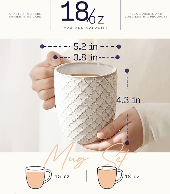 - [Set of 4 for Versatility & Ideal Size] This set includes four matching mugs, making it ideal for hosting guests or sharing a cozy drink with loved ones. The uniform design ensures that your table setting remains stylish and cohesive. 13.5 oz capacity just match your drinking needs.