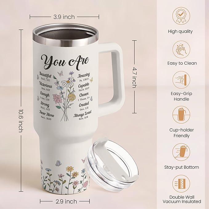 SANDJEST Christian Gifts for Women, Inspiration Gifts Tumbler 40oz Stainless Steel Insulated with Handle and Straw - Mother's Day Birthday Religious Gifts for Mom, Friend, Sister, Grandma