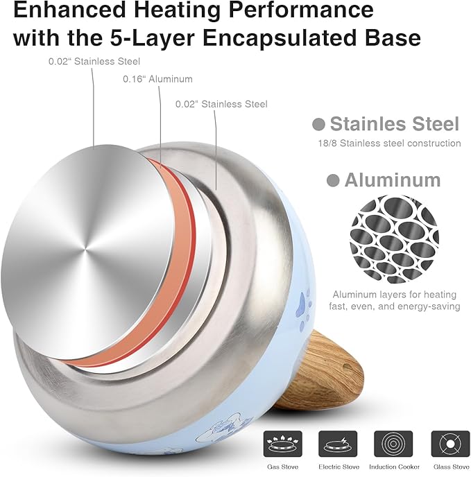 Tea Kettle, Toptier Teapot Whistling Kettle with Wood Pattern Handle Loud Whistle, Food Grade Stainless Steel Tea Pot for Stovetops Induction Water Kettle, 2.7-Quart Blue Cat