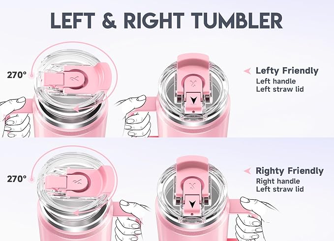 - ENJOY 2X. With DUO 2-in-1 & 100% leak-proof lid, Meoky tumbler with handle allows you to flip the straw lid to drink iced coffee and the sip lid to taste hot tea.