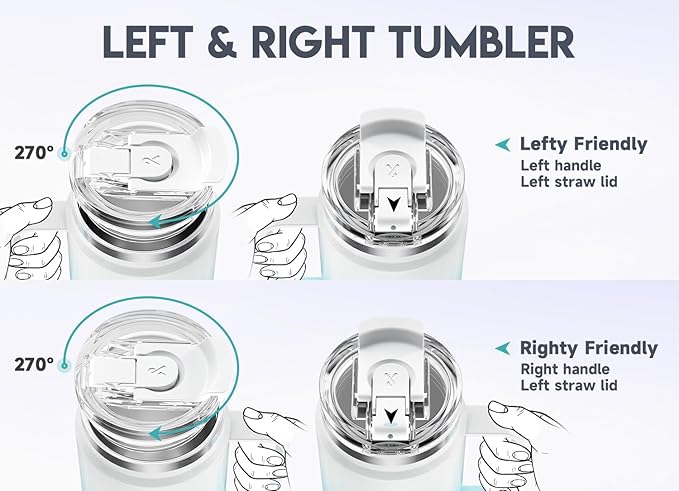 - ENJOY 2X. With DUO 2-in-1 & 100% leak-proof lid, Meoky tumbler with handle allows you to flip the straw lid to drink iced coffee and the sip lid to taste hot tea.