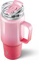 Meoky 32 oz Tumbler with Handle, Insulated Tumbler with Lid and Straw, Stainless Steel Travel Mug, 100% Leak Proof, Keeps Cold for 24 Hours or Hot for 8 Hours, Fits in Car Cup Holder (Flamingo)