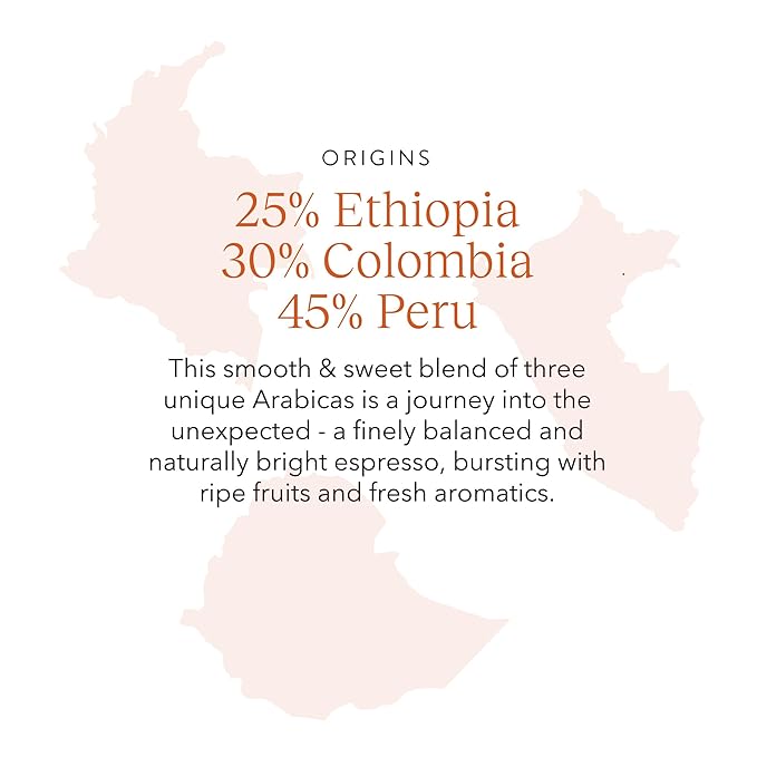 - This Smooth & Sweet Blend of Three Unique Arabicas Is a Journey into the Unexpected - a Finely Balanced and Naturally Bright Espresso, Bursting with Ripe Fruits and Fresh Aromatics