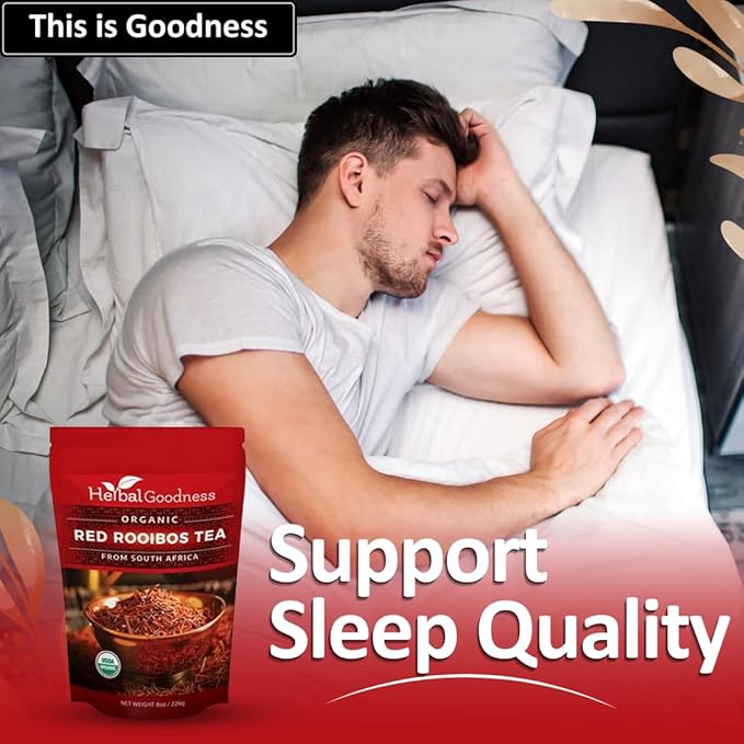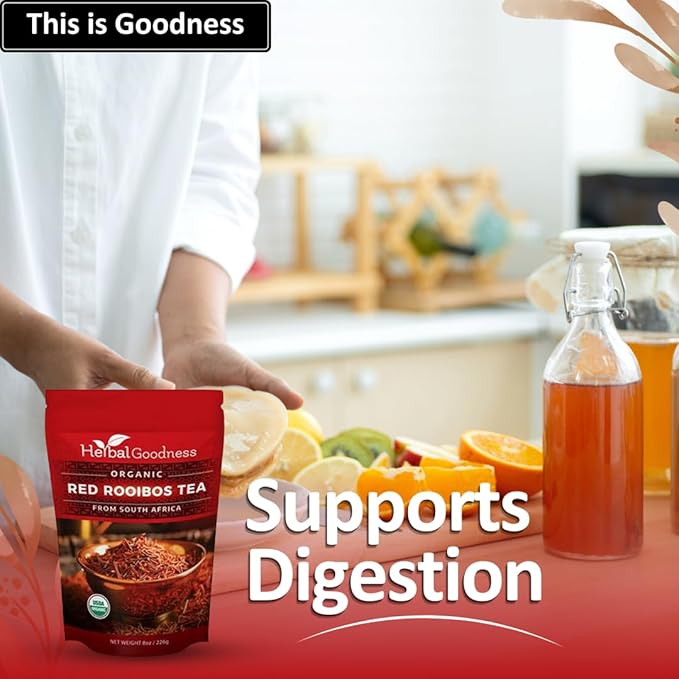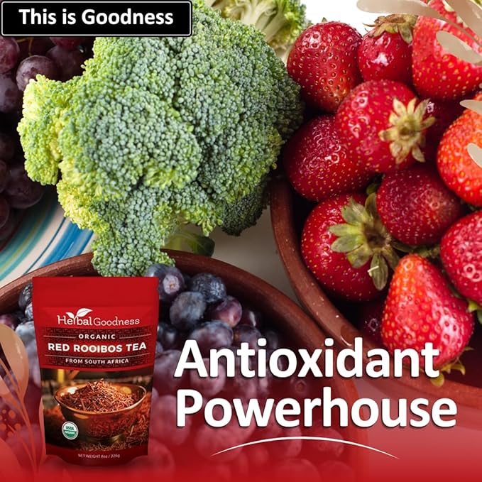 Organic Rooibos Tea - Caffeine-Free Tea Rich in Antioxidants, Herbal Tea Bags, USDA Organic, Non-GMO, Premium Red Rooibos Tea from South Africa - 8oz Pouch by Herbal Goodness