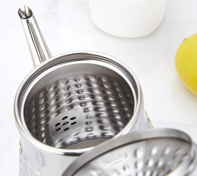 SANQIAHOME 1.8L(60oz) Stainless Steel Hammer Patterned Teapot With Removeable Infuser,Loose leaf cover,Silver