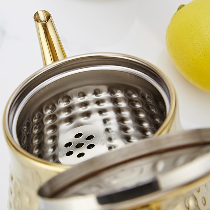 SANQIAHOME 1.2L(40oz) Stainless Steel Hammer Patterned Teapot With Removeable Infuser,Loose leaf cover,Gold
