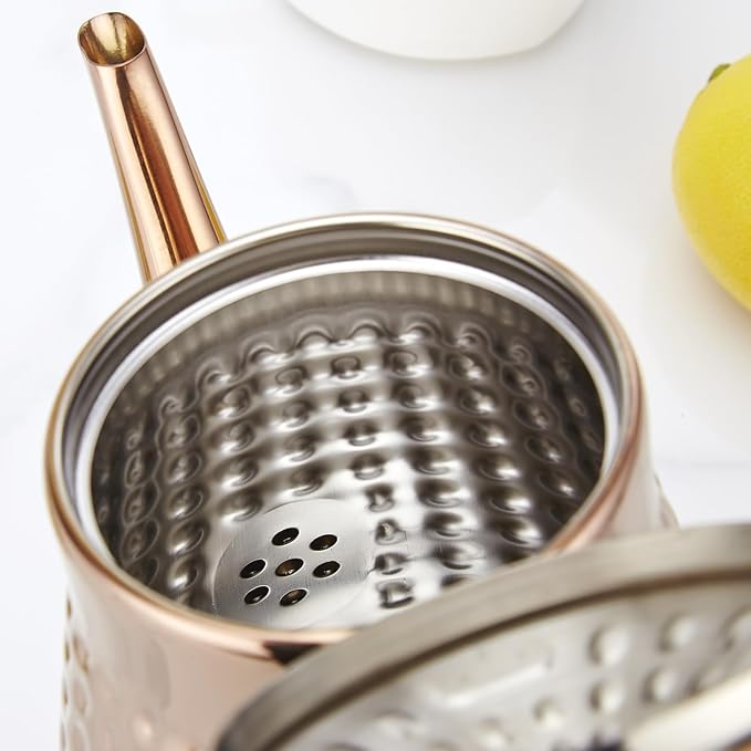SANQIAHOME 1.6L(54oz) Stainless Steel Hammer Patterned Teapot With Removeable Infuser,Loose leaf cover,Copper
