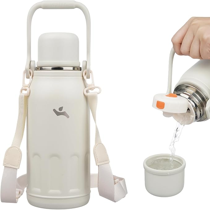 - Furnished with a portable handle and an adjustable cross-body shoulder strap, the insulated water bottle is comfortable and easy to carry any where. Perfect Thermo for outdoor adventures and daily commutes