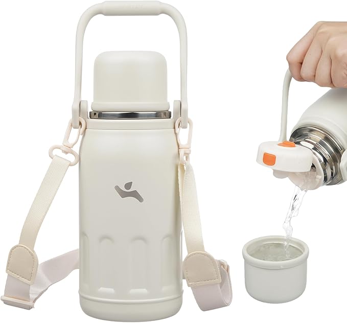 - Furnished with a portable handle and an adjustable cross-body shoulder strap, the insulated water bottle is comfortable and easy to carry any where. Perfect Thermo for outdoor adventures and daily commutes