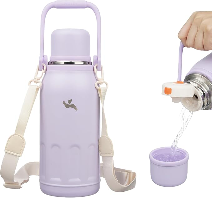 - Furnished with a portable handle and an adjustable cross-body shoulder strap, the insulated water bottle is comfortable and easy to carry any where. Perfect Thermo for outdoor adventures and daily commutes