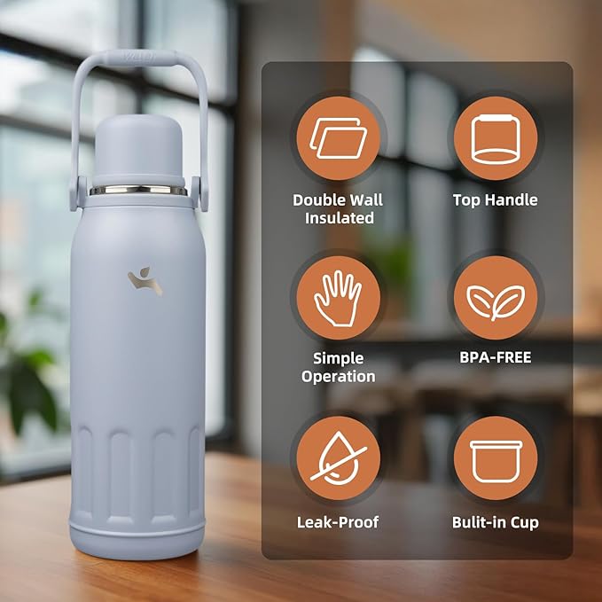 - Furnished with a portable handle and an adjustable cross-body shoulder strap, the insulated water bottle is comfortable and easy to carry any where. Perfect Thermo for outdoor adventures and daily commutes