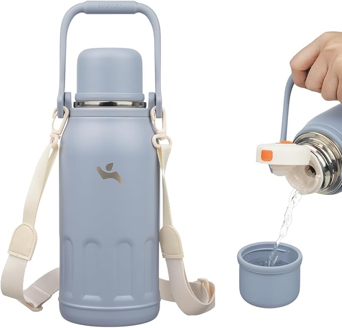 - Furnished with a portable handle and an adjustable cross-body shoulder strap, the insulated water bottle is comfortable and easy to carry any where. Perfect Thermo for outdoor adventures and daily commutes